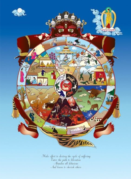The Sacred Wheel of life explains the whole cyclic existence we experience in samara (this 3 dimensional physical world) with all causes and effects.